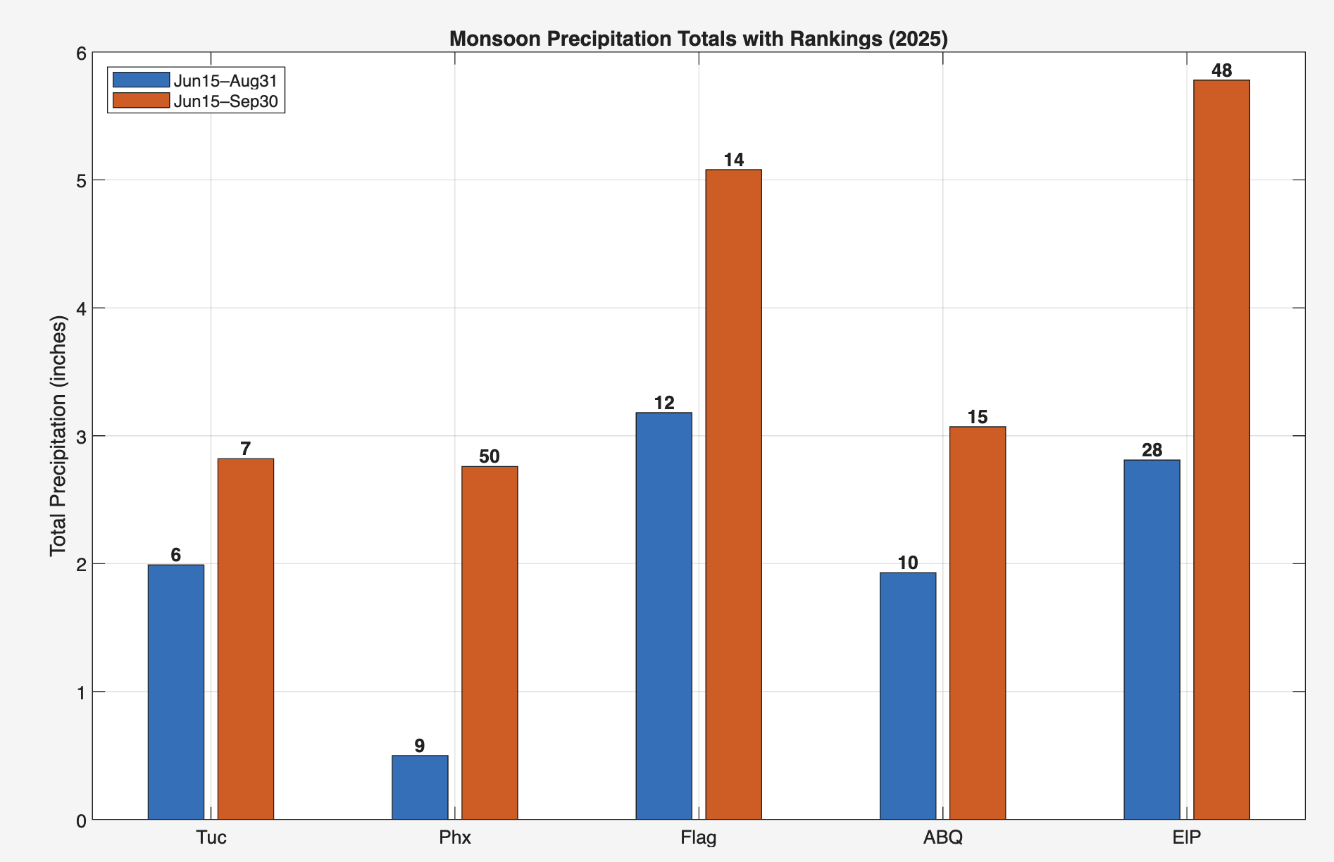 In this month’s Southwest Climate Podcast hosts Zack Guido and Mike Crimmins kick it off by saying goodbye to the monsoon. They do a recap of the season with a focus on last month's rain events. September was interesting to say the least - this leads to a philosophical discussion on whether it is the same flavor as the rest of the monsoon. The hosts tie up the episode with what’s on the horizon for this coming winter & the ENSO forecast.